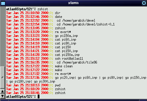 is a simple python script to read .zsh_history written with EXTENDED_HISTORY option, and display the timestamp in a human-readable format. As a bonus it can colourise the output. To download zshist, click
